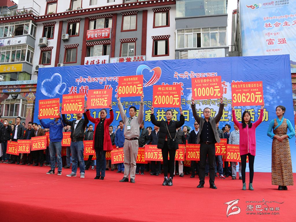 隨后,杜德清宣布2015年全國扶貧日甘孜主題活動開幕,捐款舉牌儀式正式開始。