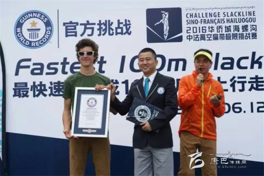 6月11日“2016華僑城海螺溝高空扁帶極限挑戰(zhàn)賽”上,法國選手Nathan Paulin以零失誤的成績成功完成了海拔3600米、長度820米高空扁帶極限挑戰(zhàn),完成了一次驚艷視覺、顛覆想象、燃爆心跳的極限之旅,創(chuàng)造了世界最高海拔,最長距離的高空扁帶運動的東方奇跡,被譽為“北緯30°的云端行走”。次日,法國選手Lucas Milliard在海螺溝大橋下以1分59秒73的成績創(chuàng)造了最快速度完成100米扁帶上行走吉尼斯世界紀(jì)錄,成為這項吉尼斯世界紀(jì)錄的締造者。從此,他的名字隨著中國四川甘孜海螺溝一起被整個世界所記錄。