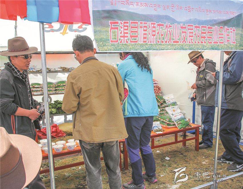 8月3日是石渠縣帳篷節(jié)的最后一天,清晨的陽光透過炊煙傾灑在草原千余頂帳篷上,40多歲的藏族漢子嘎戎從生活區(qū)的帳篷里出來,走向不遠的太陽部落帳篷商貿(mào)城集市。那里安扎著400多頂帳篷,有商戶370家,周邊還有50多個流動的小商販。嘎戎所在的石渠縣福源農(nóng)牧業(yè)發(fā)展農(nóng)民合作社就是其中的一家參展商。從帳篷節(jié)開始,嘎戎就和其它5個人輪流值守這個他們倍加珍惜的展位,那是他們合作社自今年4月份成立至今第一次在如此重大的場合中露面,經(jīng)過這次檢驗,他們對自己的產(chǎn)品更加有信心。駐真達村第一書記祝修濤告訴記者,短短一個星期,合作社展售的糌粑、人參果、奶渣近2000斤,銷售額達4萬多元。這個農(nóng)民專業(yè)合作社以扶貧為己任,從建設(shè)種植基地到水磨房加工投入了200多萬元,全村50戶村民參與,合作社將原料統(tǒng)一發(fā)給村民加工,再統(tǒng)一收起來,統(tǒng)一包裝銷售。祝修濤說,社里的產(chǎn)品剛開始只是在當(dāng)?shù)爻鍪?,雖然投入大但產(chǎn)量不敢做大,這次有這個平臺得到了市場的認(rèn)可,他們對合作社的發(fā)展充滿了信心。祝修濤,作為該村的第一書記,他要帶領(lǐng)著這個合作社好好規(guī)劃、大干一場。