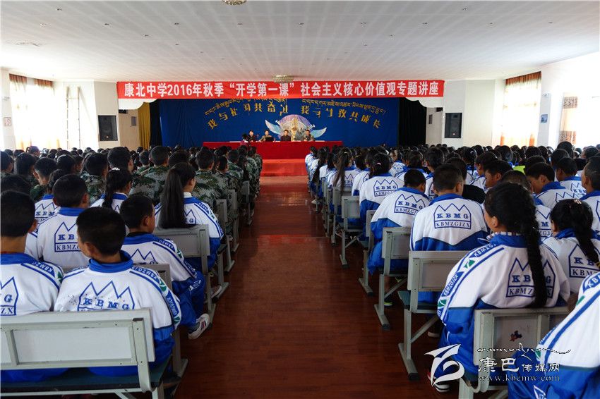 9月5日上午,康北民族高級中學(xué)迎來新學(xué)期的第一課,由康定中學(xué)教師李發(fā)軍作專題講座,康北民族高級中學(xué)近700名師生聆聽講座。授課中,李發(fā)軍從社會主義核心價值觀提出的背景、社會主義核心價值觀的科學(xué)內(nèi)涵、怎樣踐行社會主義核心價值觀三個方面以深入淺出、通俗易懂的方式引導(dǎo)學(xué)生們理解社會主義核心價值觀的內(nèi)涵,弘揚(yáng)中華民族的傳統(tǒng)美德,激發(fā)報國情懷。