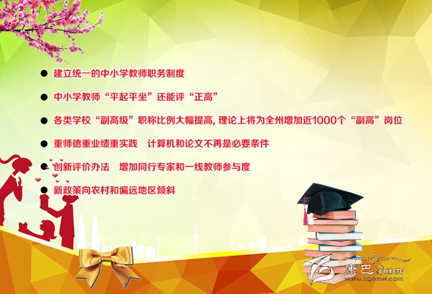據(jù)李國(guó)平介紹,按目前全州12000余名專任教師的總數(shù)來(lái)算,此次“副高級(jí)”職稱比例調(diào)整,理論上將為全州增加近1000個(gè) “副高”崗位,同時(shí)還會(huì)騰出同等數(shù)目的中級(jí)職稱崗位,總共會(huì)有2000名左右教師的職稱會(huì)因此提升。