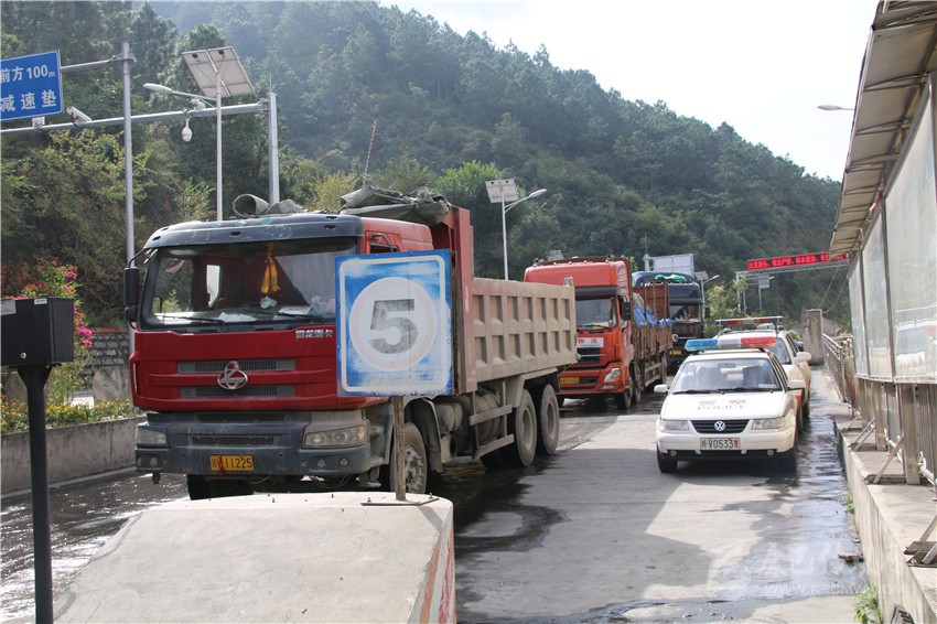去年10月21日,全國將執(zhí)行新的貨運車裝載標(biāo)準(zhǔn),將降低貨車運載量。20日,瀘定檢測站迎來了大貨車運輸高峰,當(dāng)天通過瀘定檢測站的進州貨車就高達953輛,陡然增加的車流量,讓瀘定檢測站執(zhí)法人員忙得不可開交。凌晨1點左右,因距離檢測站數(shù)公里外道路正在施工,造成交通大面積擁堵。盡管不在工作職責(zé)范圍內(nèi),瀘定檢測站除值班人員留守外,交通路政、運管、公安交警、特警全員上陣疏導(dǎo)交通?;謴?fù)通行時,已經(jīng)是凌晨3點過。對于這樣的“家常便飯”,執(zhí)法人員已經(jīng)司空見慣?!安荒茉跈z測站周邊造成交通擁堵,這是我們的職責(zé)”。