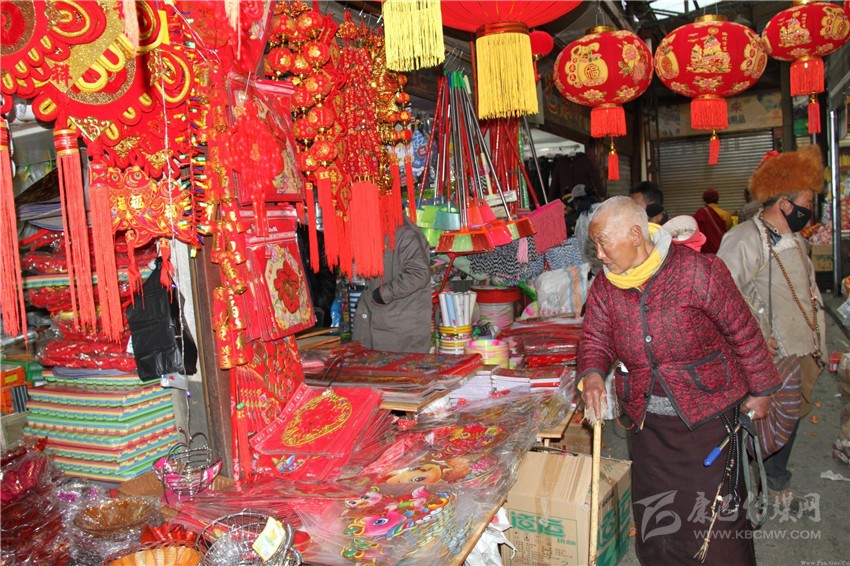 在康定市,無論是在康定民貿(mào)公司各商場、鄰里超市,還是在康定郭達(dá)農(nóng)貿(mào)市場,人們關(guān)心最多的還是年貨?!?/span>2017年是雞年,家里要掛些雞年物件,這不正在選購。”“過年少不了的就是酒、煙、茶和飲料等。”正在置辦年貨的市民告訴記者。