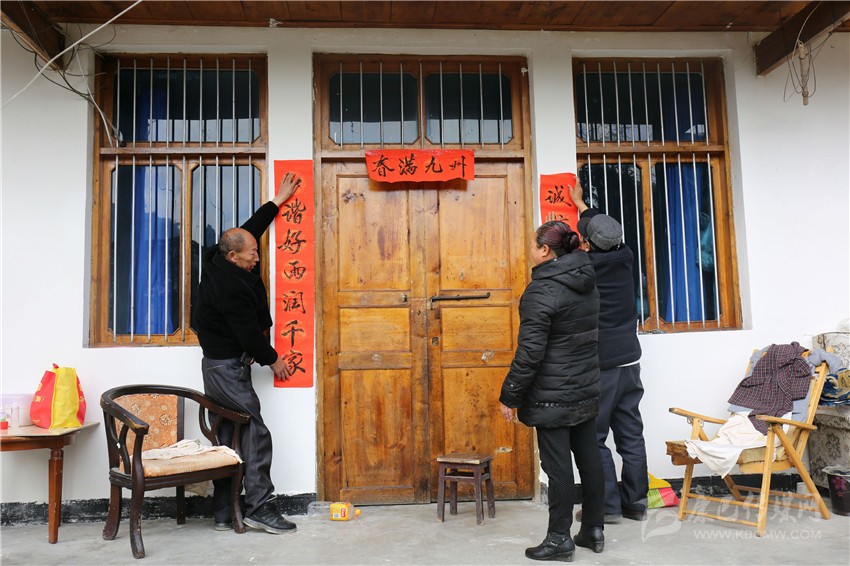 貼完自家的春聯(lián),老陳又到鄰居家?guī)兔N,見到鄰居蘭大爺家準備的春聯(lián)與街上賣的不一樣,是手寫春聯(lián)。老陳一打聽才知道,原來海螺溝管理局宣教群團處正開展“迎新春,送春聯(lián)”活動,這些手寫春聯(lián)正是蘭大爺特意去活動現(xiàn)場免費領取的??粗鴷◥酆谜啐堬w鳳舞的字體,老陳非常喜歡,轉(zhuǎn)頭對妻子說:“過兩天咱們也去要兩幅手寫春聯(lián)回來”。