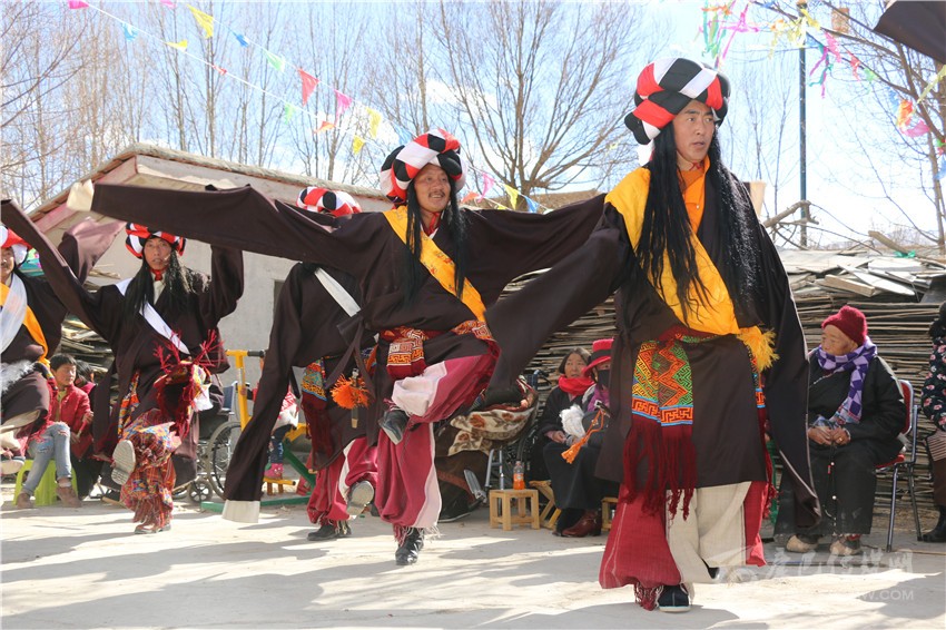 演出現場,80歲的澤則瑪高興地說:“我們一直都是從電視上觀看全國各地舉辦的新春文藝表演,沒想到今年春節(jié)我們小小的一個村子也有了自己的舞臺?!贝竽瓿跻?,村民們早早吃過飯,穿上表演服在村級文化活動室等待10點鐘正式演出,活動室外的觀眾們正翹首以盼。伴隨著歡快的歌舞聲響起演員們翩翩起舞,為村子增添了節(jié)日的歡樂。