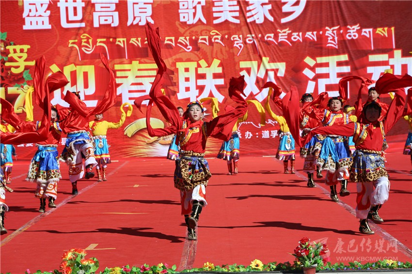 文藝演出以歌舞《歡樂金雞》開場,聯唱《東山頂上》、《祝?!泛汀稓g樂頌》等不同風格的歌曲,唱出了農牧民群眾熱愛家鄉(xiāng),依靠自己的雙手,不斷追求和創(chuàng)造幸福生活;舞蹈《雪域高原》、《新春祝福》、《康定情人》洋溢出春臨大地,福滿人間,各族兒女歡歡喜喜過大年的場景。