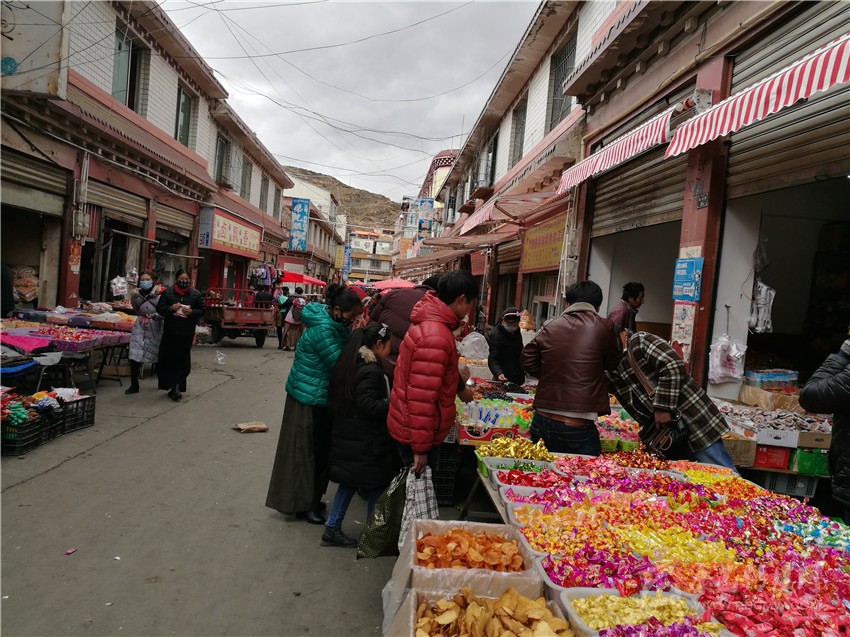 筆者在該縣副食店、超市看到,商家的各種促銷優(yōu)惠活動(dòng),吸引了不少農(nóng)牧民群眾,前來購(gòu)買年貨的群眾熙熙攘攘。各種涼鹵食品店的生意也相當(dāng)火爆?!翱爝^年了,吃的、用的和穿的都得買點(diǎn),過完藏歷年,就要忙春耕生產(chǎn)了?!笔掷锪嘀蟀“曦浀慕荡霛M臉喜悅地說。