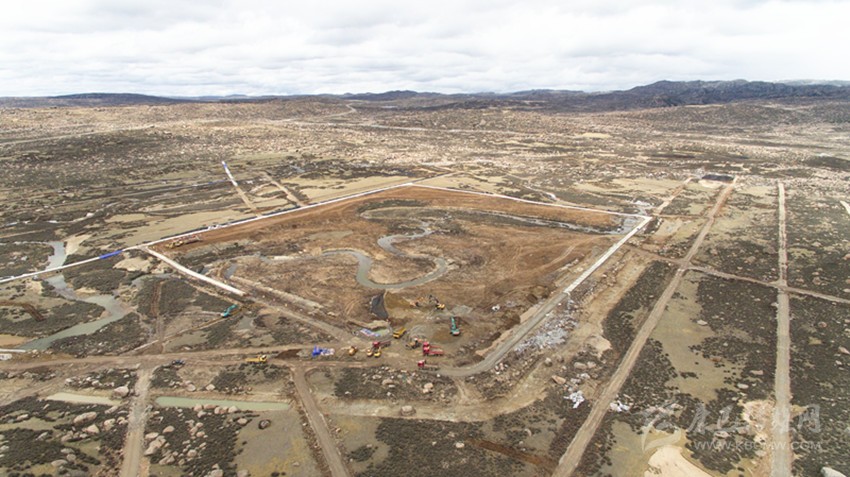 在海子山散落著數(shù)米寬巨石的曠野上,一塊有10個足球場大的圓形區(qū)域已經成型,挖土機忙著挖出3個“品”字形、深4.5米的巨型水池。