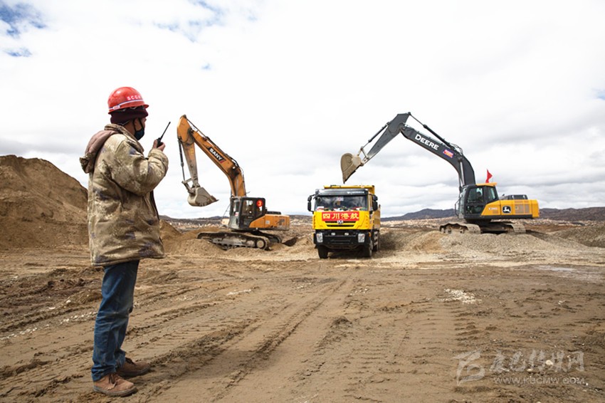 在四川省稻城縣海子山高海拔宇宙線觀測站建設現(xiàn)場,工人們在施工。