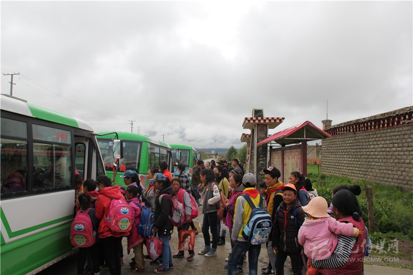 學(xué)生排隊(duì)乘公交。