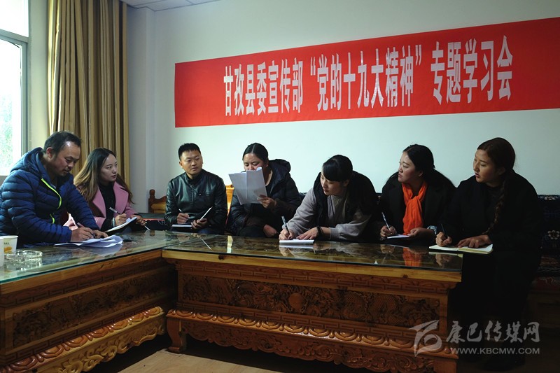 本網訊 (則瑪拉姆 文/圖)連日來,甘孜縣依托中心組、干部講堂、“三級三講”等學教平臺,圍繞“黨的十九大精神、《中國共產黨章程(修正案)》、習近平新時代中國特色社會主義思想、決勝全面建成小康社會”四大專題開展學習,采取專家輔導講、專題研討學、集中考學評等形式,迅速組織廣大黨員干部原原本本學、聯(lián)系實際學、突出重點學,切實把黨的十九大精神轉化為謀劃發(fā)展的思路、促進發(fā)展的舉措、領導發(fā)展的能力和推進發(fā)展的合力。圖為11月6日下午,縣委宣傳部組織全體職工專題學習黨的十九大精神。