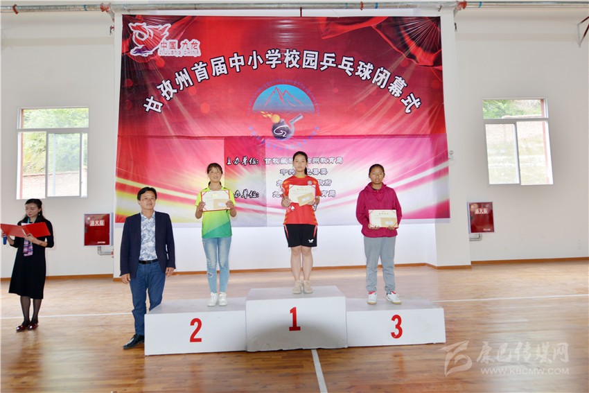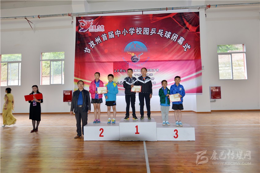 閉幕式上,乒乓球裁判長(zhǎng)向全體運(yùn)動(dòng)員宣布:甘孜州首屆校園乒乓球賽圓滿結(jié)束,此次比賽成績(jī)真實(shí)有效,符合賽事組委會(huì)預(yù)先制定的競(jìng)賽規(guī)則。周敏吉、邱志明、唐定成、翁義分別為獲得小學(xué)組、初中組、高中(中職)組獲得女單、男單、混合雙打前三名的運(yùn)動(dòng)員頒獎(jiǎng)。
