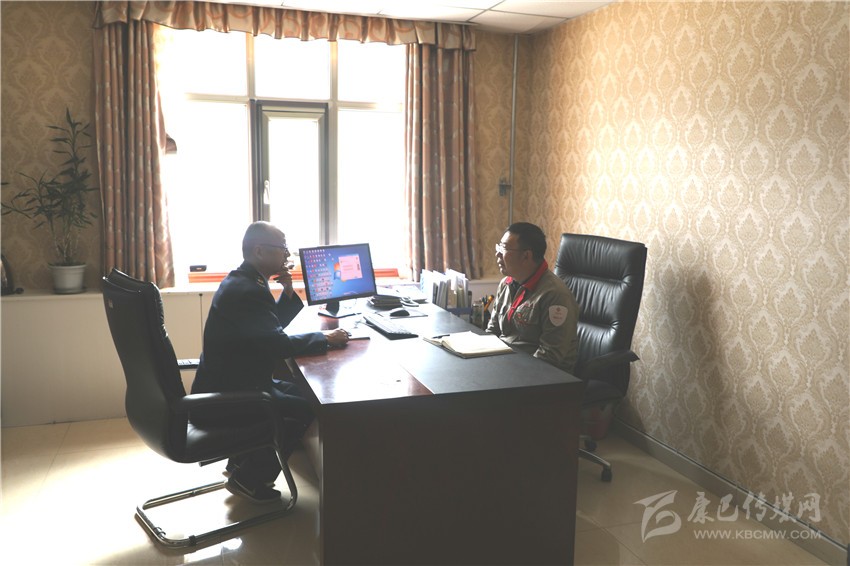 稅務局紀檢組長岑領(左)與鑫源礦業(yè)財務負責人劉德山(右)對接減稅降費相關工作。