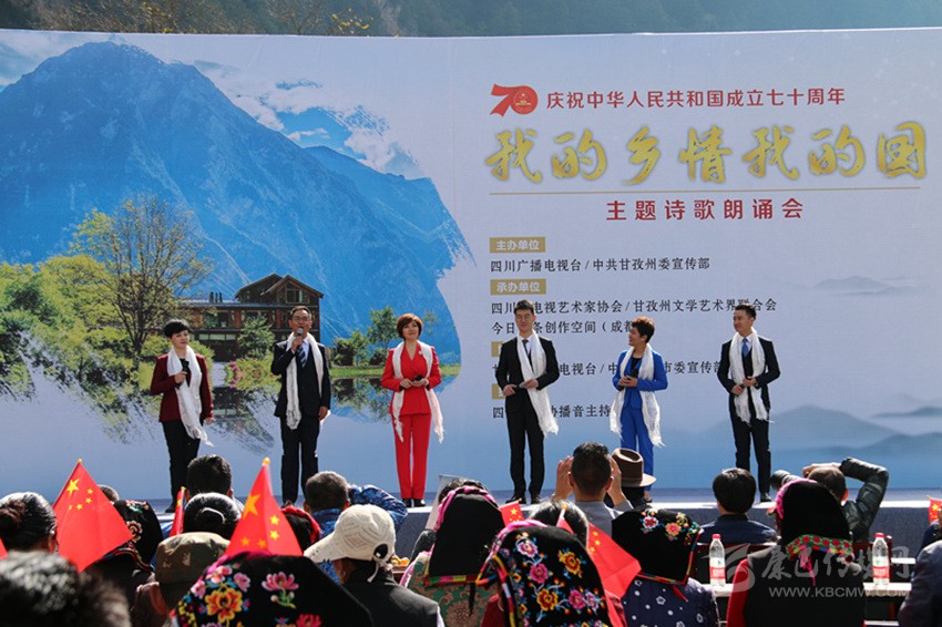 本網(wǎng)訊 10月16日,由省廣播電視臺(tái)、州委宣傳部聯(lián)合主辦的“我的鄉(xiāng)情我的國(guó)”主題詩(shī)歌朗誦會(huì)在康定市孔玉鄉(xiāng)色龍村圓滿落幕。20多名省內(nèi)知名主持人和朗誦藝術(shù)家齊聚色龍村,以天為幕、地為臺(tái),通過朗誦、演唱、情景表演等藝術(shù)形式歌頌美麗富饒的甘孜,展示甘孜新時(shí)代鄉(xiāng)村振興的美好畫卷,講述新中國(guó)成立以來發(fā)生在蜀鄉(xiāng)大地上的故事,獻(xiàn)禮中華人民共和國(guó)成立70周年。