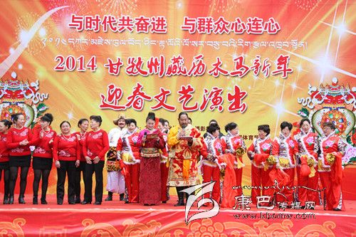 本網訊(記者)3月1日,由州文化體育和廣播影視局主辦,州歌舞團、州文化館、康定縣文化旅游和廣播影視體育局承辦的“2014甘孜州藏歷木馬新年迎春文藝演出”在康定情歌廣場隆重舉行。來自我州的各族干部群眾喜氣洋洋觀看了演出。