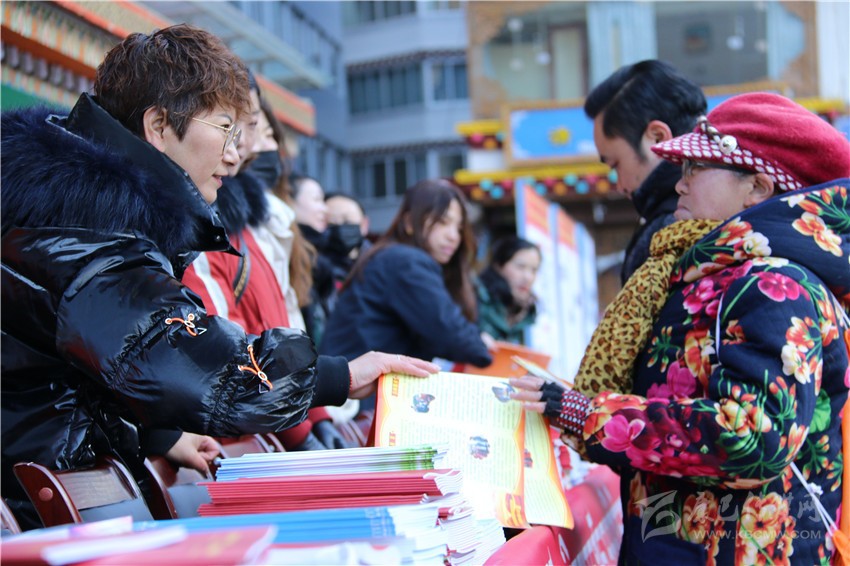 活動(dòng)現(xiàn)場(chǎng),工作人員為市民發(fā)放民族團(tuán)結(jié)進(jìn)步宣傳品、民族團(tuán)結(jié)進(jìn)步藏漢雙語(yǔ)宣傳教育讀本、宣傳畫(huà)、宣傳折頁(yè)、宣傳掛歷、《中國(guó)民族報(bào)》甘孜州民族團(tuán)結(jié)專(zhuān)刊、《民族》雜志甘孜州民族團(tuán)結(jié)專(zhuān)刊等各類(lèi)宣傳資料9800余份(本),擺放展板30個(gè)。來(lái)自丹巴縣的仁真說(shuō):”現(xiàn)在的幸福生活離不開(kāi)偉大的中國(guó)共產(chǎn)黨的領(lǐng)導(dǎo),也離不開(kāi)全國(guó)各族人民共同團(tuán)結(jié)奮斗、共同繁榮發(fā)展。”