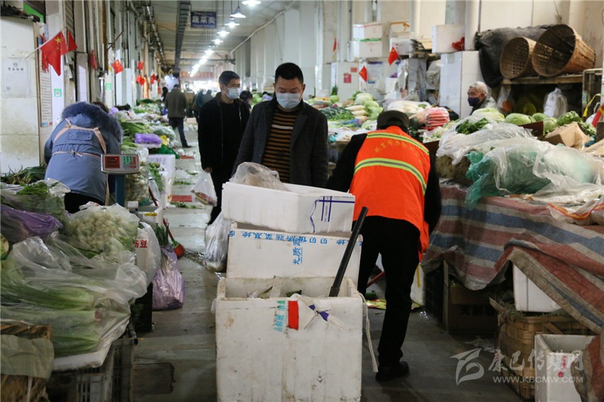 3月14日上午8點(diǎn)以前,龔學(xué)東再次深入攤位逐一檢查,確保市場(chǎng)全體商戶除了對(duì)各自店面的掃除、保潔和消毒外,還對(duì)諸如公廁、水池、垃圾桶、停車場(chǎng)等公共區(qū)域以及家禽水產(chǎn)售賣點(diǎn)、下水道、上下樓梯等重點(diǎn)部位,開(kāi)展“零死角”全覆蓋的衛(wèi)生環(huán)境集中整治。對(duì)此,龔學(xué)東解釋說(shuō):“郭達(dá)菜市地處城區(qū)核心區(qū)域,人口流動(dòng)量大、安全隱患不小、防控壓力倍增,齊抓共管做好病媒生物防制措施極其必要,而全面提升攤主衛(wèi)生意識(shí)、保障公共區(qū)域清潔消殺、減少細(xì)菌病毒滋生,就是最為有效有力的抓手。”