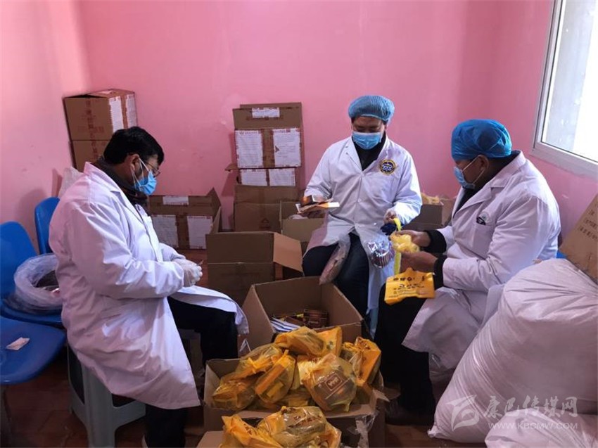 醫(yī)務(wù)人員送防疫藏藥到隔離點(diǎn)。