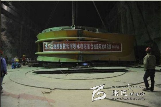 當日下午15時,隨著現(xiàn)場總指揮下達指令:“座環(huán)吊裝開始!”。橋機操作工在地面人員的指揮下,緩緩啟動橋機,直徑11.42米、重達330噸的長河壩水電站4號機座環(huán)被緩緩吊離地面,經(jīng)4名安全員確認安全后,操作工平穩(wěn)地操作橋機吊運著座環(huán),慢慢地駛向主廠房最深處的4號機組安裝現(xiàn)場。