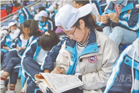 早上7點30分左右,記者來到這片特殊的學生方陣時發(fā)現(xiàn),不少學生把課本帶去了現(xiàn)場,正趁著候場間隙埋頭苦讀。據(jù)康定中學老師李虓偉介紹,同學們是排練隊伍中進場時間最晚、排練時間最短的一個團隊,“在不耽誤課程的情況下,孩子們將所有能抽出來的時間全部奉獻給這次演出了,所以每次排演總是格外地認真,絲毫沒有怨言,為了節(jié)約時間,同學們還利用訓練期間短暫的休息時間,埋頭溫習課本、做作業(yè)?!?/p>