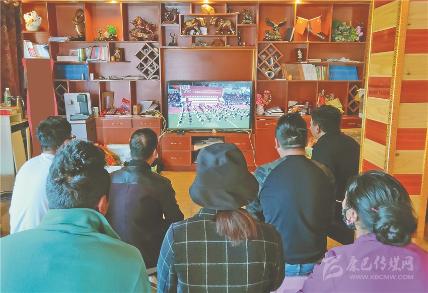 在得榮縣統(tǒng)計(jì)局會(huì)議室,該局干部職工早早就守候在電視機(jī)前,等待直播開(kāi)始。當(dāng)慶祝大會(huì)現(xiàn)場(chǎng)國(guó)旗升起、國(guó)歌奏響,該局干部職工也全體起立,向國(guó)旗行注目禮,同唱國(guó)歌;當(dāng)看到精彩處時(shí),大家不禁激動(dòng)地?zé)崃夜恼?,齊聲叫好。“看到得榮方隊(duì)的激情表演,那震撼的場(chǎng)面讓我心潮澎湃。”次仁群忠激動(dòng)地說(shuō),“我們親眼目睹、親身感受了甘孜州成立70年來(lái)得榮發(fā)生的翻天覆地的變化,尤其是近十年來(lái),發(fā)展越來(lái)越快、越來(lái)越好,作為一名甘孜兒女,我為生活在這片熱土感到非常自豪。”