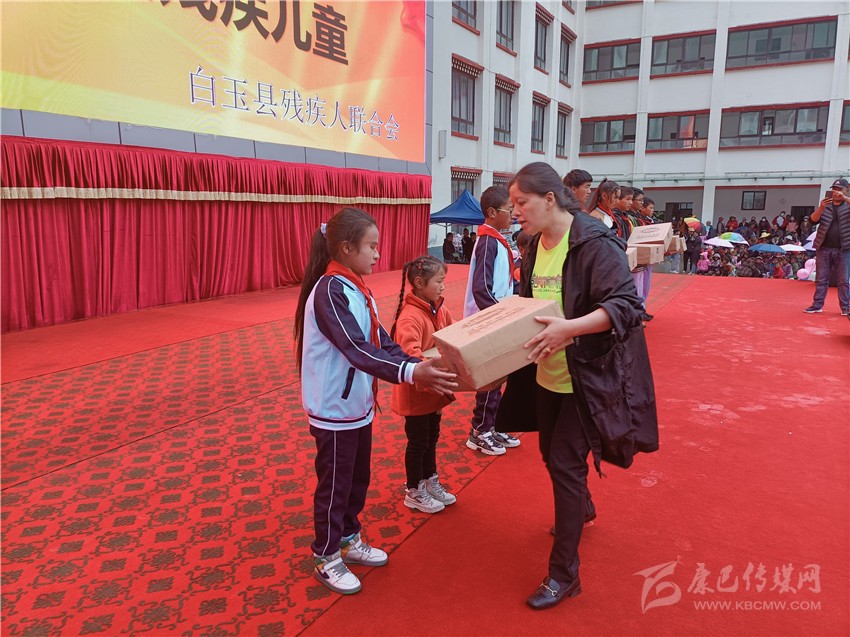 在“六一”兒童節(jié)之際,白玉縣殘聯(lián)前往城區(qū)各學(xué)校,與殘疾兒童親切交談,詳細了解孩子們學(xué)習(xí)、生活、家庭等方面的情況,鼓勵孩子們保持樂觀向上的心態(tài),積極面對生活,并為他們送去了價值6000余元的文具禮包、書包等節(jié)日禮物。圖為工作人員把禮物送到孩子們手上。 梁露 鄧珠吉村 攝影報道