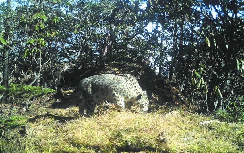 “可能很多人都不知道,距離四川成都城區(qū)這么近的地方有雪豹?!贝笮茇垏夜珗@崇州管護總站副站長王磊介紹說,收集回來的監(jiān)測畫面中,有7個監(jiān)測點位的紅外相機都監(jiān)測到雪豹活動的身影。