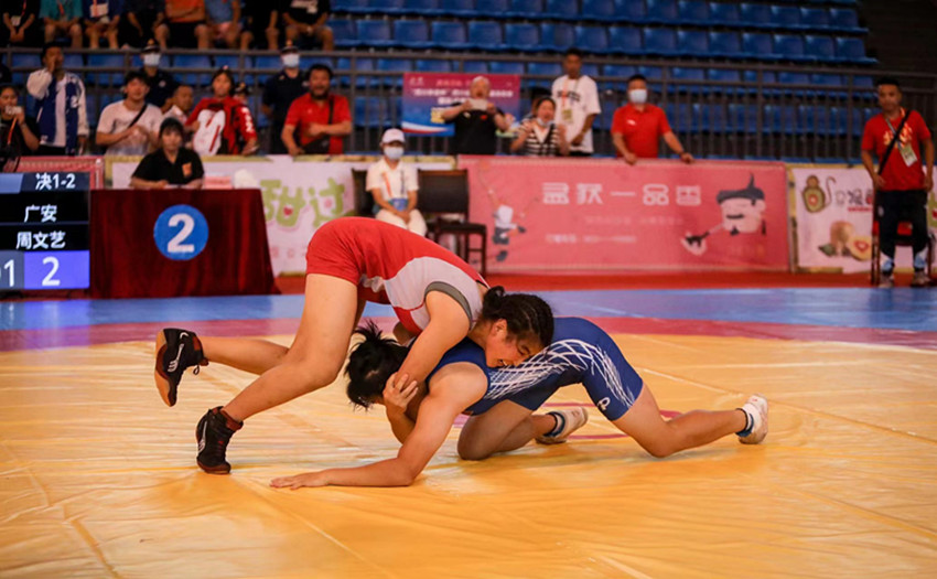 我州運(yùn)動(dòng)員(紅衣)蒲靜勇奪金牌。