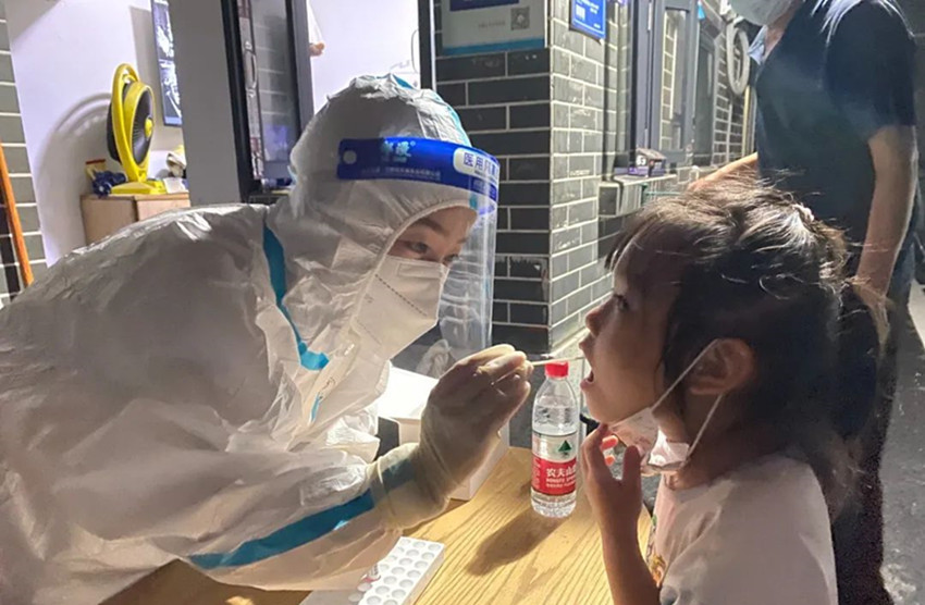 圖為醫(yī)務人員正在開展核酸檢測采樣。