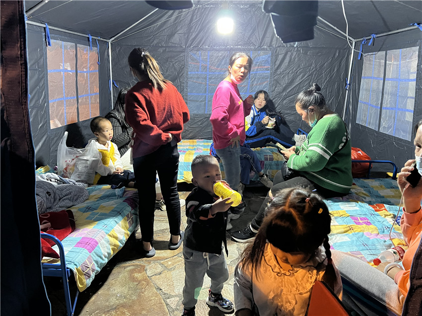 受災(zāi)群眾住進了救災(zāi)帳篷。