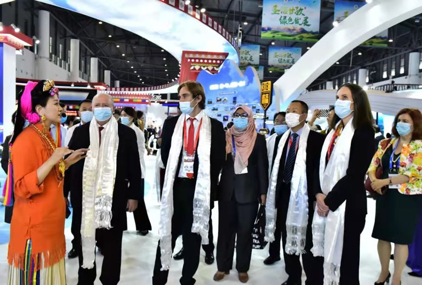 在第十八屆中國西部國際博覽會(huì)上向外賓推介甘孜。