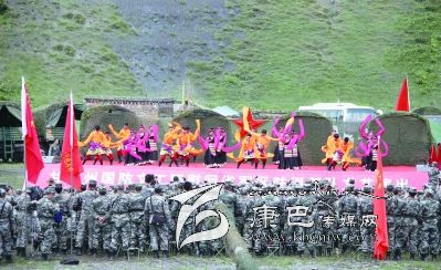 慰問演出在獨立營戰(zhàn)士的拉歌聲中徐徐拉開帷幕,隨后,《北京的金山上》、《我的士兵兄弟》等一首首耳熟能詳?shù)母枨鹨簧涎?。《歡歌踏舞》、《盛世歡歌》等舞蹈,時而歡快跳躍,時而雄壯豪邁,歌曲《說句心里話》唱出了官兵的思念之情,也唱出了官兵們保家衛(wèi)國的心聲。整場演出在舞蹈《康巴人》中落下帷幕。