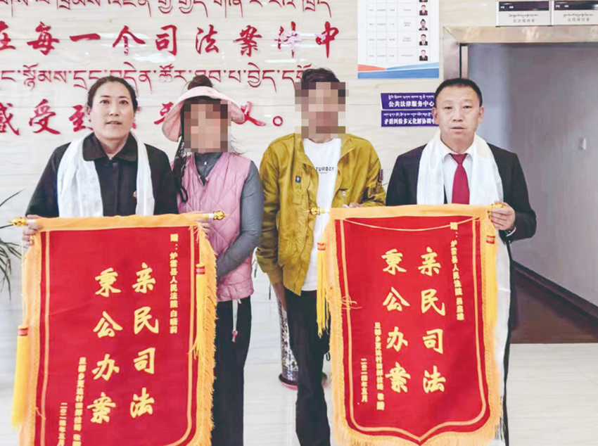 當(dāng)事人為呂啟雄(右)送來錦旗。