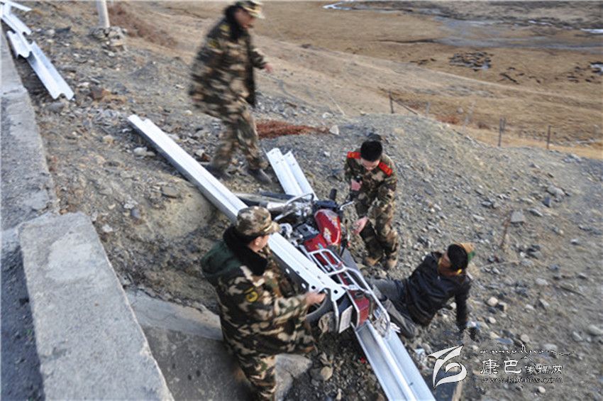 11月29日,甘孜州消防官兵在抗震救災(zāi)途中,發(fā)現(xiàn)一名騎摩托車的青年摔倒在5米高的路基下,右腿被死死被壓住不能動彈。據(jù)了解,消防官兵結(jié)束道孚縣中古村安置點消防安全檢查,準(zhǔn)備返回祖慶學(xué)校安置點,行駛至塔公鄉(xiāng)海拔4000米左右處,發(fā)現(xiàn)事發(fā)摩托車就在消防官兵所乘車輛前10米處。駕駛?cè)藛T是一名藏族青年,在他發(fā)動摩托車時,轉(zhuǎn)眼就摔倒掉下公路路基。
