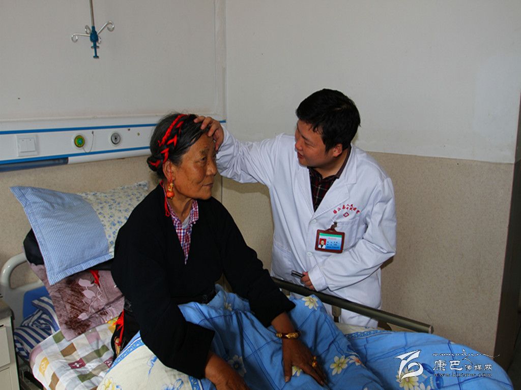 劉曦正在查看尼瑪視力恢復(fù)情況。