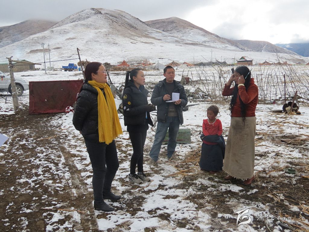 佘和平與“搭檔”益西青措冒雪向村民了解情況。