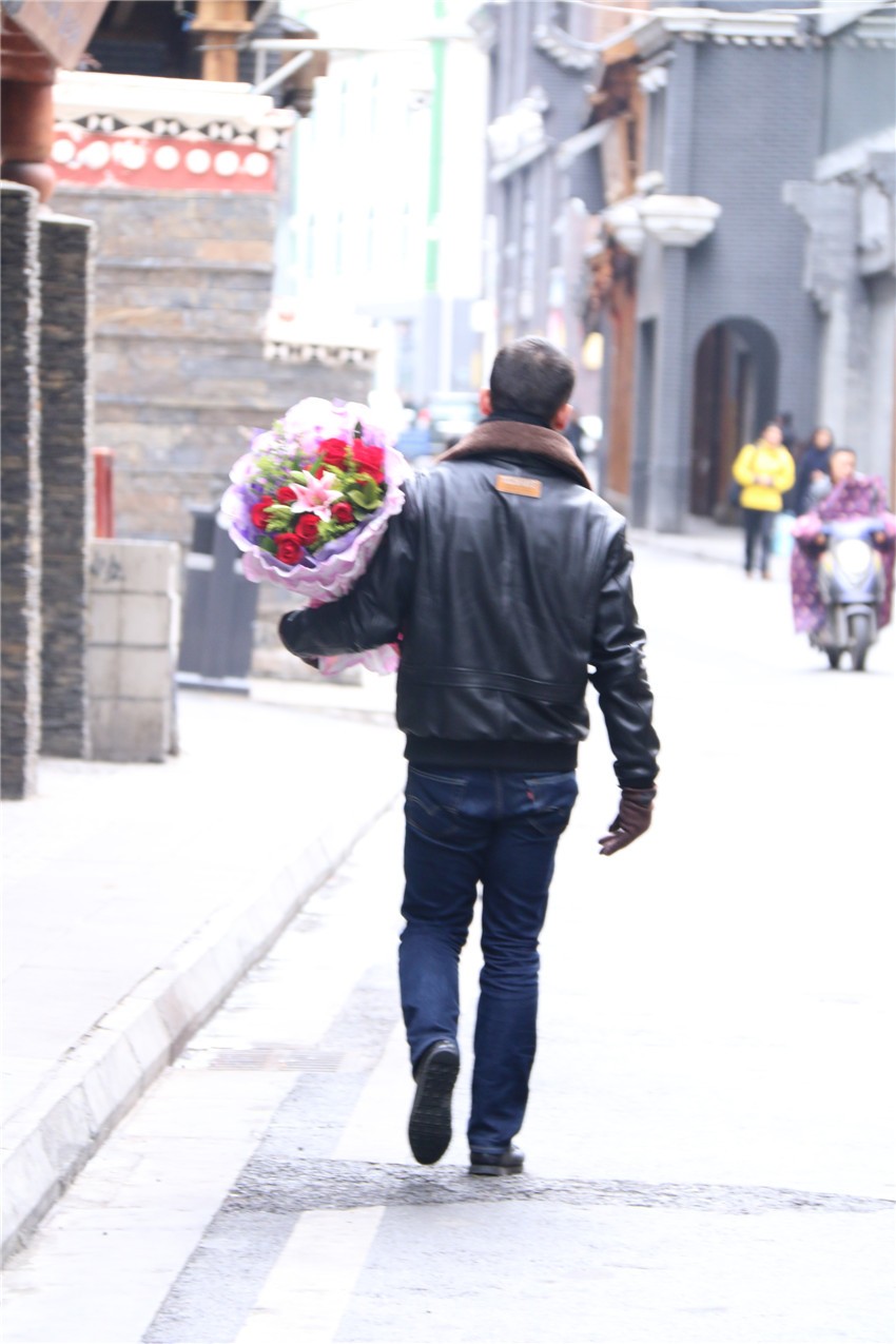 愛(ài)神阿佛洛狄特為了追尋情人阿多尼斯,在玫瑰花叢中奔跑,被花刺刺傷,白色的玫瑰花因其血液浸染從此變成紅色的故事,玫瑰便成了愛(ài)情的象征和傳情的首選信物?,F(xiàn)在,用一束精心挑選的玫瑰向心愛(ài)的那個(gè)她表達(dá)濃烈、深沉的情意已是康定人過(guò)情人節(jié)的重要元素。微風(fēng)中、花店里,那一束束繽紛燦爛的玫瑰,不僅承載著花店老板的經(jīng)濟(jì)收入,更承載著眾多男女的愛(ài)情收獲,儼然是最鮮明的節(jié)日符號(hào)。而玫瑰花必不可少的“搭檔”便是一張泣血陳“情”的賀卡,而寫賀卡最佳姿勢(shì)恐怕應(yīng)該是單膝跪地。