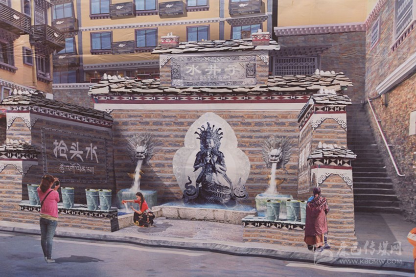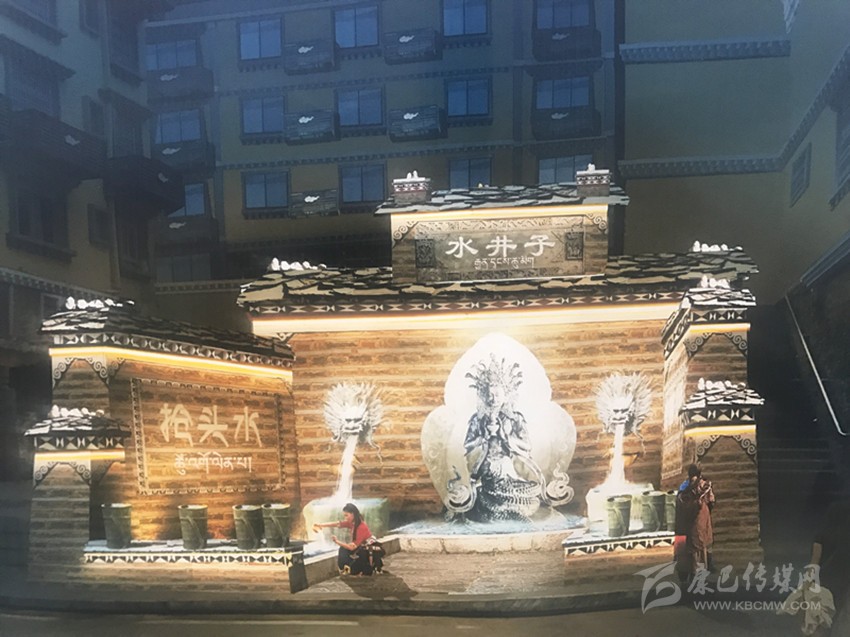 在現(xiàn)場,“水井子”原址已被圍擋封閉施工。根據(jù)設(shè)計,此次提升將融入“搶頭水”民族習俗,并結(jié)合互動性祈福、見證愛情的表現(xiàn)手法旨在將水井子打造成為康定城中的體驗式民俗景點。從外觀上看,內(nèi)街水井依然采用開放式外墻,正中神龕放置藏族水龍王塑像,兩邊塑造龍頭,以“二龍噴水”景觀作為新的出水方式,下方池邊則安放傳統(tǒng)背水姑娘雕塑。