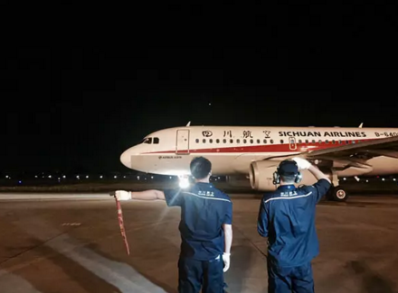 8月9日凌晨5時26分,民航第一個抗震救災(zāi)加班航班——川航3U8111運(yùn)送救災(zāi)人員及物資,從成都起飛前往九寨,返程將接滯留旅客回蓉。