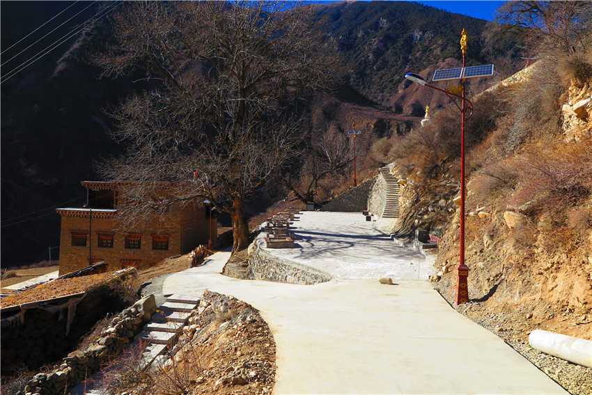 色威鄉(xiāng)谷日村位于縣城以北10公里處,過(guò)于由于村集體經(jīng)濟(jì)薄弱弱,村域公共設(shè)施少,村民平時(shí)聚集都是在田間地頭。在宜賓援建下,2017年該村建起了廣場(chǎng)、觀景臺(tái)、太陽(yáng)能路燈、公廁等設(shè)施。每天傍晚,村民們紛紛走出家門(mén)來(lái)到廣場(chǎng)跳鍋莊、話(huà)家常、散散步,一下讓村莊的“人情風(fēng)味”濃了起來(lái)。