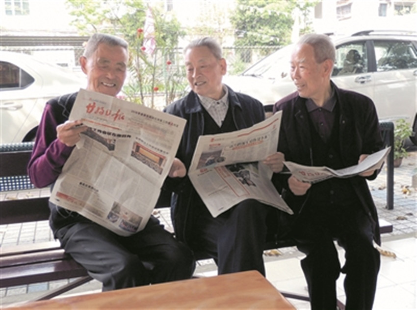 本網(wǎng)訊(鄧知 高嬌 文/圖)4月13日上午,甘孜州雅安干休的離退休干部們晨練結(jié)束后,便開始閱報(bào)。今年84歲的離休干部聶庭梅首先翻閱最新的《甘孜日報(bào)》?!耙私庵輧?nèi)新聞,還得通過甘孜日報(bào)。我們雖然退休了,但仍然牽掛曾經(jīng)工作過的甘孜州。退休至今,我都是通過《甘孜日報(bào)》了解第二故鄉(xiāng)發(fā)生的變化。”聶庭梅離休已經(jīng)有30多年,他對《甘孜日報(bào)》情有獨(dú)鐘,尤其關(guān)注他曾經(jīng)工作過的雅江縣發(fā)生的新聞。
