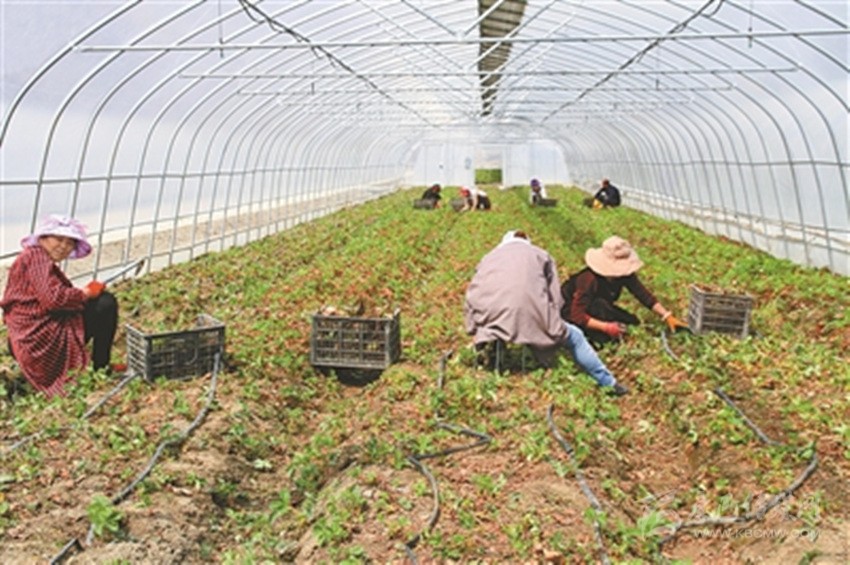 貧困村民正在草莓種植基地除草。