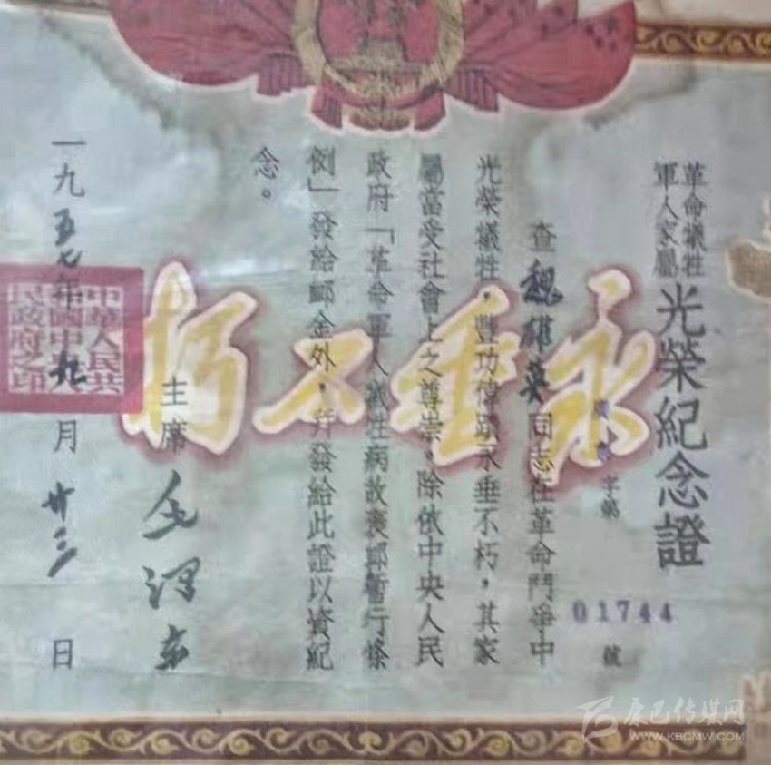 魏雄英烈士證。