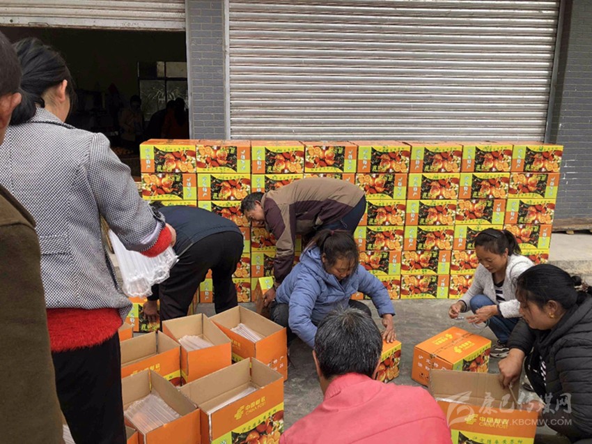 村民忙著黃果柑裝箱。