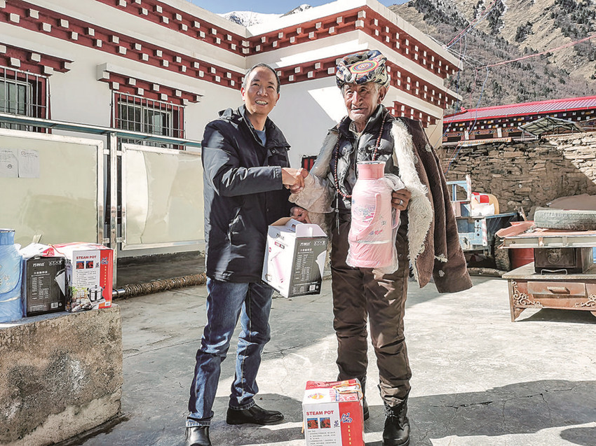 戴林為自己的結(jié)對(duì)“親人”送慰問(wèn)品。