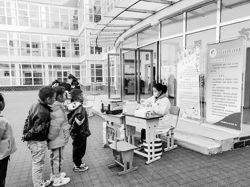 圖為醫(yī)護(hù)人員到學(xué)校開(kāi)展預(yù)防接種工作。