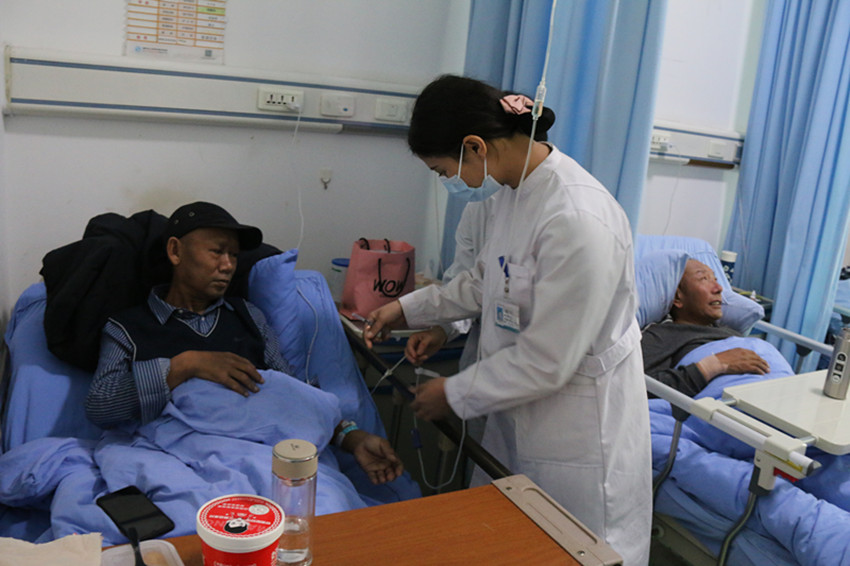 向秋翁姆為患者輸液。