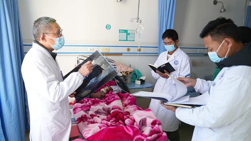 醫(yī)療幫扶不是蜻蜓點(diǎn)水,而是要扎根結(jié)果。藍(lán)忠榮在對口支援期間積極發(fā)揮自身專科優(yōu)勢,固定每周一進(jìn)行病區(qū)大查房,每月進(jìn)行一次疑難病歷討論,結(jié)合臨床癥狀分析講解疾病特點(diǎn)及治療方案。在縣醫(yī)院、人武部、縣衛(wèi)健局開展多次院前急救培訓(xùn),幫助當(dāng)?shù)蒯t(yī)生提高專業(yè)水平和學(xué)術(shù)水平,為推動醫(yī)院學(xué)科人才隊(duì)伍建設(shè)提供有力的支持,幫助鄉(xiāng)城縣打造一支“帶不走”的醫(yī)療隊(duì)伍。