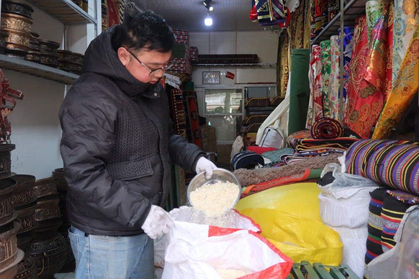 對于馬建文來說,像尼瑪這樣的“回頭客”還真不少,在與客人們打交道的過程中,獨在異鄉(xiāng)的他感受到了道孚群眾的溫暖、團(tuán)結(jié)和互助?!耙郧芭純河腥藖淼昀铩畵v亂’,附近的居民得知此事后,主動站出來幫助我,告訴大家各民族親如一家,要心手相連、和睦互助?!倍嗄赀^去,馬建文至今仍清晰地記得,店鋪剛開業(yè)時,道孚兒女給予他的暖心幫助。