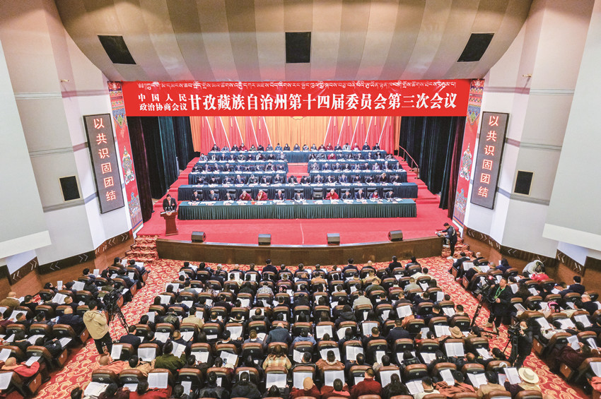 州政協(xié)十四屆三次會(huì)議開幕大會(huì)現(xiàn)場(chǎng)。